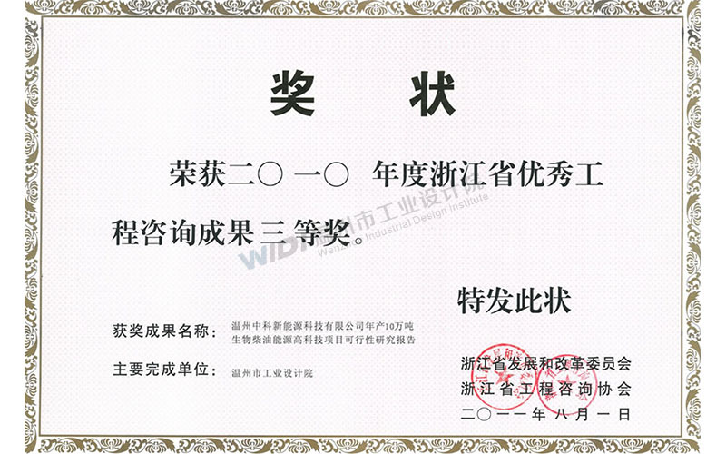溫州中科新能源科技有限公司年產(chǎn)10萬噸生物柴油能源高科技項目可行性研究報告 省優(yōu)秀咨詢成果三等獎